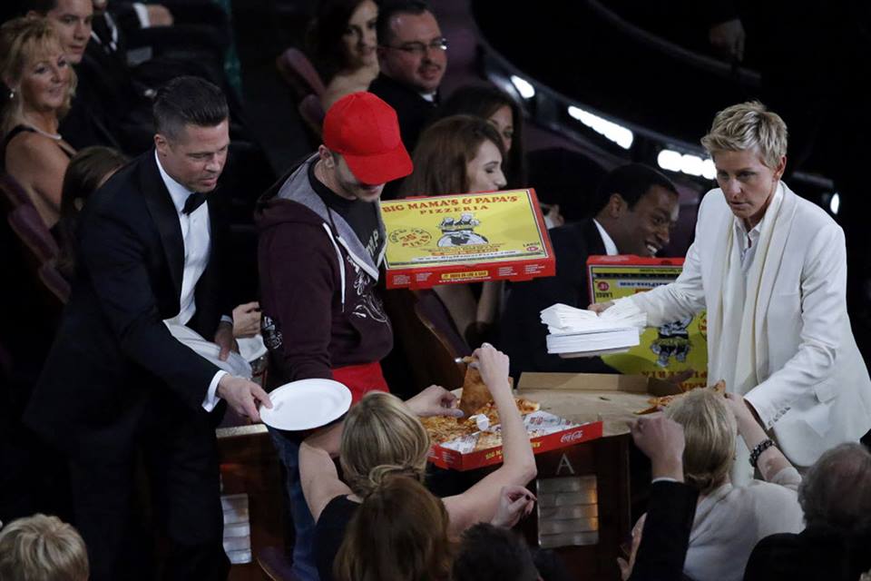 Last night’s Academy Awards made pizza history. Host, Ellen DeGeneres ordered delivery pizza to the Hollywood & Highland Center for all the starving A-list celebs sitting in the audience at the Oscars.