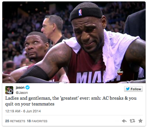Using the hashtag “LeBroning,” social media users began mimicking James’ exit from the court and sharing pictures of themselves being carried by friends.