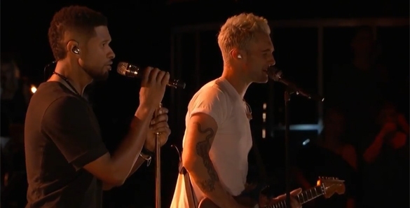 Last night, The Voice coaches Usher and Adam Levine teamed up to cover D’Angelo‘s smash hit “Untitled (How Does It Feel).” Sorry ladies, neither Usher nor Adam performed “Untitled” naked or shirtless, but the performance was still awesome.